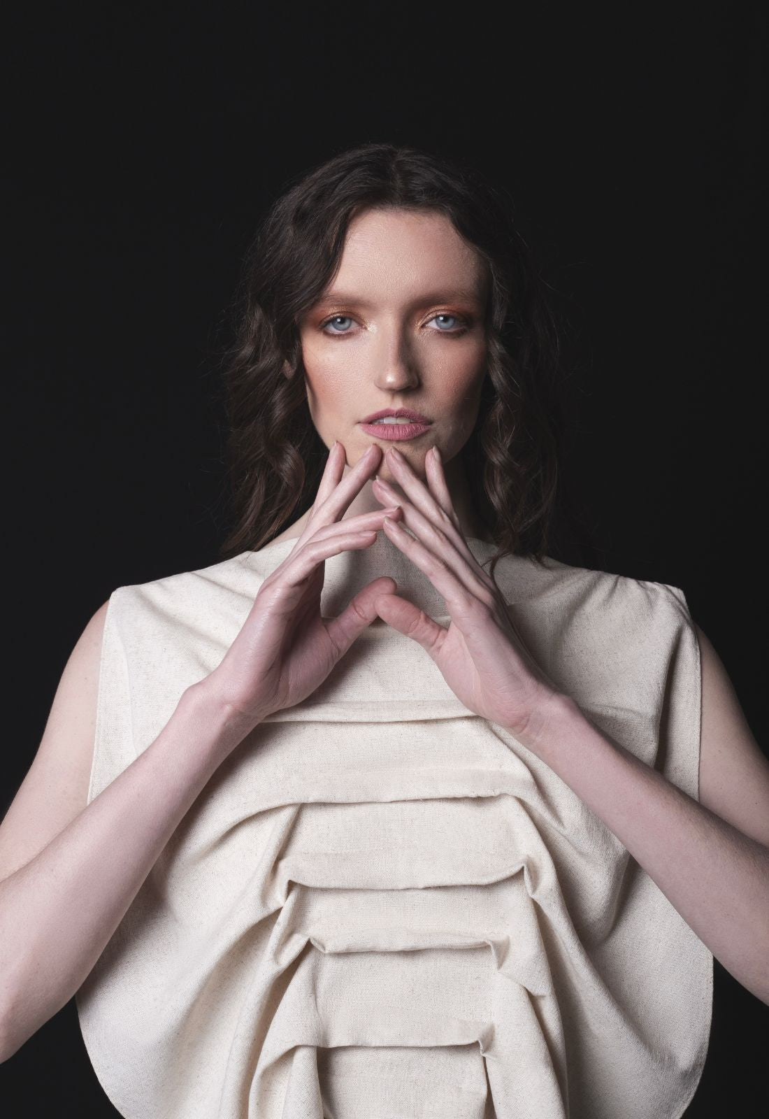 Discover our MEDUSA blouse, a piece that features a delicate and charming design. Its sleeveless cut and boat neck provide a classic and refined touch, while the front pleats with a U-shaped back neckline add visual structure and femininity. Crafted from linen, this blouse combines timeless elegance with contemporary details. Perfect for those seeking subtle sophistication and versatility in every look.
