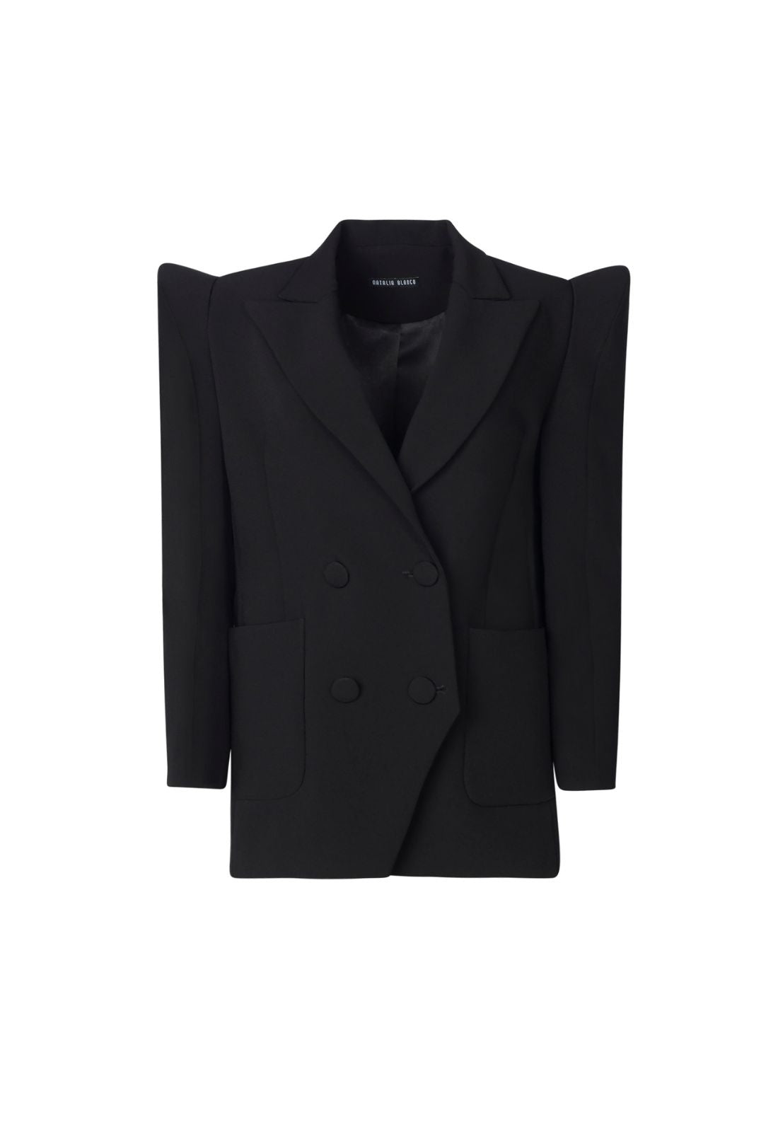 Blazer oversize sastre de cruce doble con hombros en punta y bolsillos de parche.